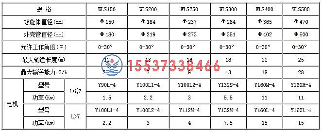 無軸(zhóu)螺旋輸送機參數表如下: